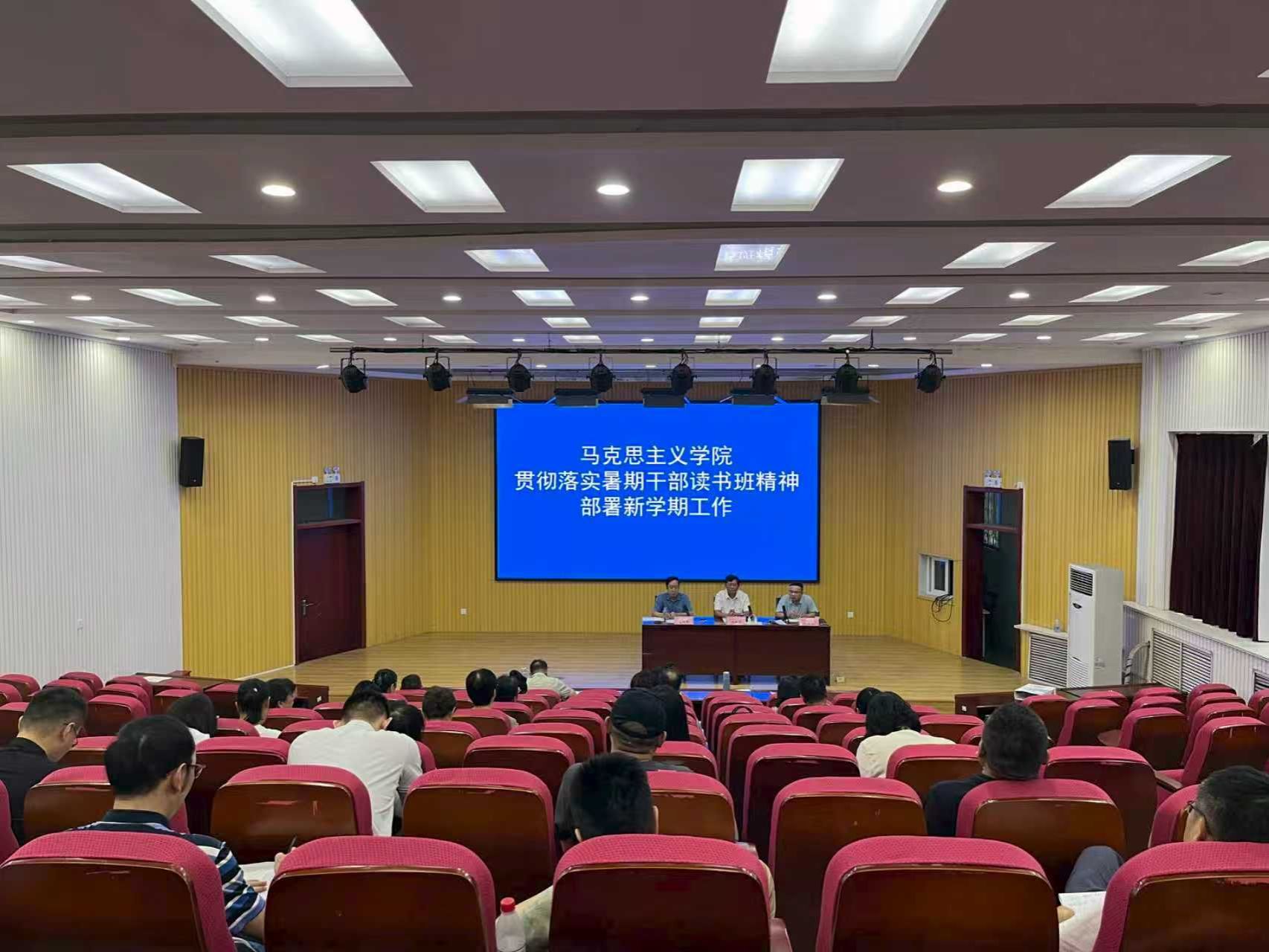 8月24日下午,马克思主义学院召开全体教师会议,传达学习2025年暑期领导干部读书班精神,总结上半年及暑期工作成效,并对新学期重点任务进行全面部署,全体教职工参加会议。